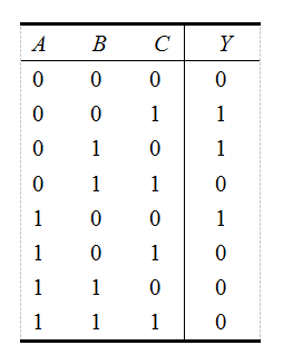 单选13、已知逻辑函数的真值表如下所示,则输出<em>Y</em>的逻辑式为( )。