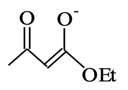 乙酰乙酸乙酯在EtONa作用下所生成的共轭碱,可以写成多种共振式,其中能量最低的,“贡献”.最大的是 ( )。