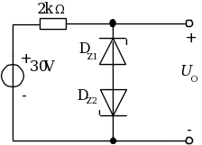 (单选题)电路如图所示,设DZ1的稳定电压为9V,DZ2的稳定电压为12V,设稳压管的正向压降为 0.7V,则输出电压UO等于( )。