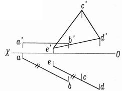 下图所示AB直线与三角形CDE平面的相对几何关系是:
