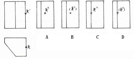 下图所示五棱柱表面上一点K,其正确的侧面投影是: