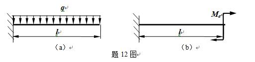 材料、长度、 横截面形状和尺寸完全相同的 两根梁,若同时发生破坏,则施加在 ( b )梁上的集中力偶 <em>Me</em>= ( 1/2 )。
