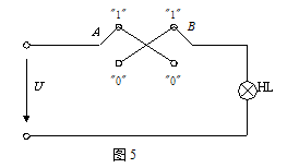 由开关组成的逻辑电路如图5所示,设开关A、B分别有如图5所示为“0”和“1”两个状态,则电灯