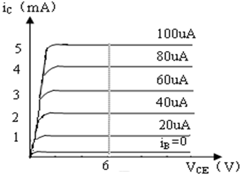 某NPN型三极管的输出特性曲线如图1所示,当VCE=6V,其电流放大系数β为( )