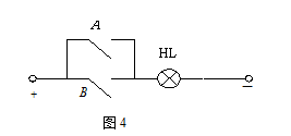 由开关组成的逻辑电路如图4所示,设开关接通为“1”,断开为“0”,电灯亮为“1”,电灯暗为“0”,则该电路为 ( )。
