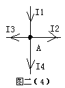 电路图二(4)中,A为一节点,而且I1=2A,I2=3A,I3=1A,则I4的电流为( )。